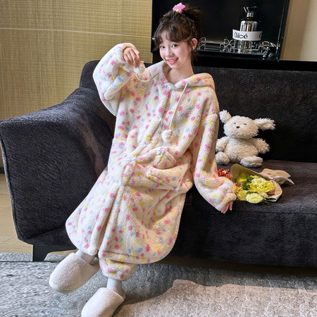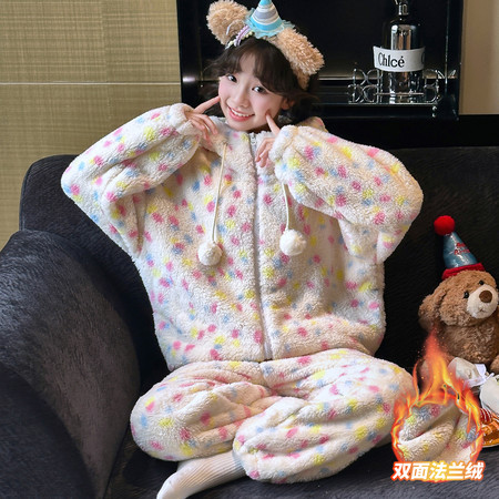 1*9收藏“2517女童款彩色点点双面绒睡袍套装”