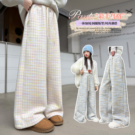 s*2收藏“2518款女童千鸟格一体绒阔腿裤”